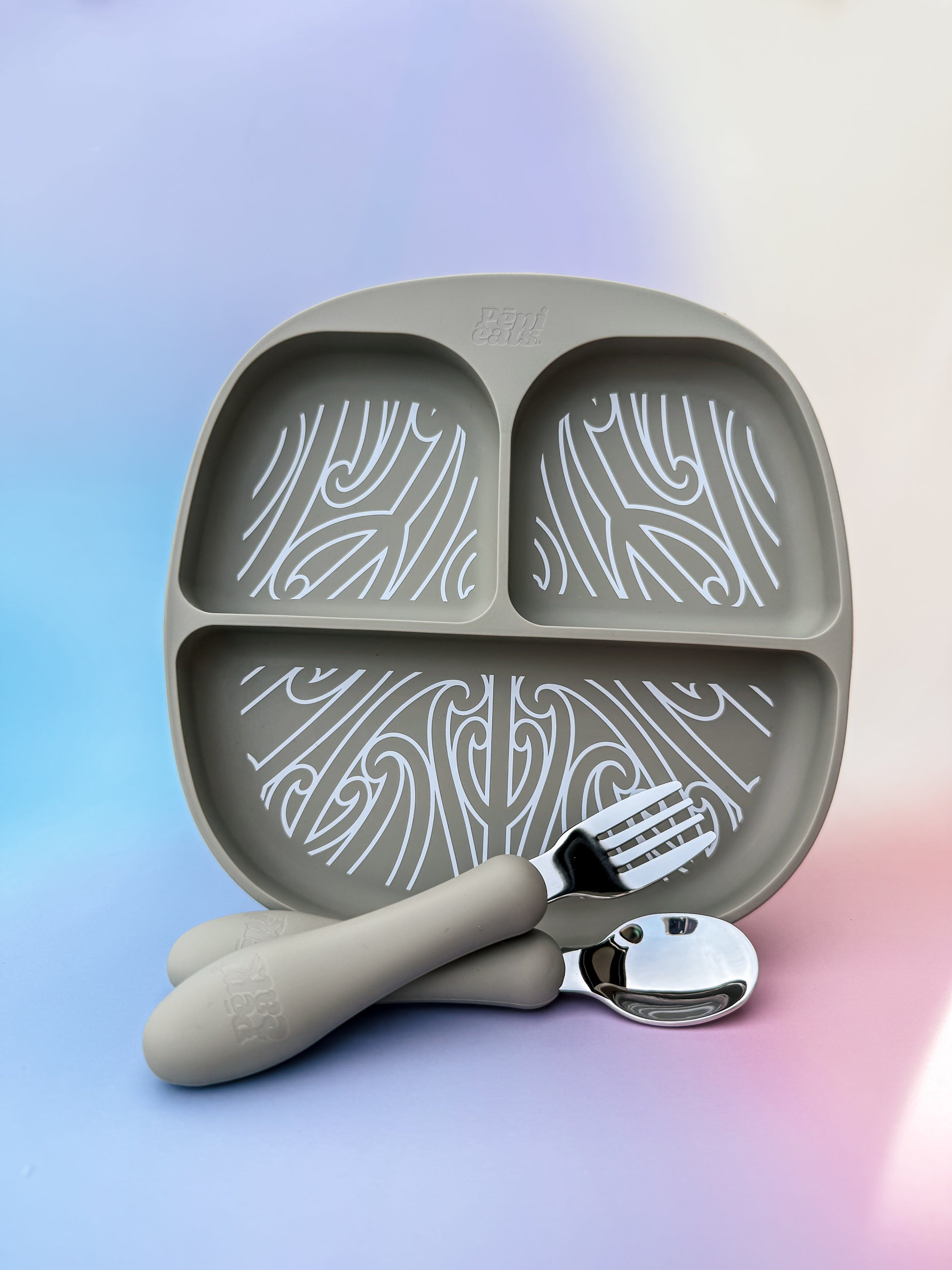 Bring kaupapa and style to the table with our Signature Pēpi Eats Kōwhaiwhai Suction Plate. Inspired by traditional kōwhaiwhai patterns, this plate isn’t just practical – it’s a celebration of culture woven into everyday kai time.